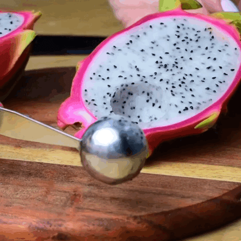 This sturdy stainless steel baller makes great fruit balls.