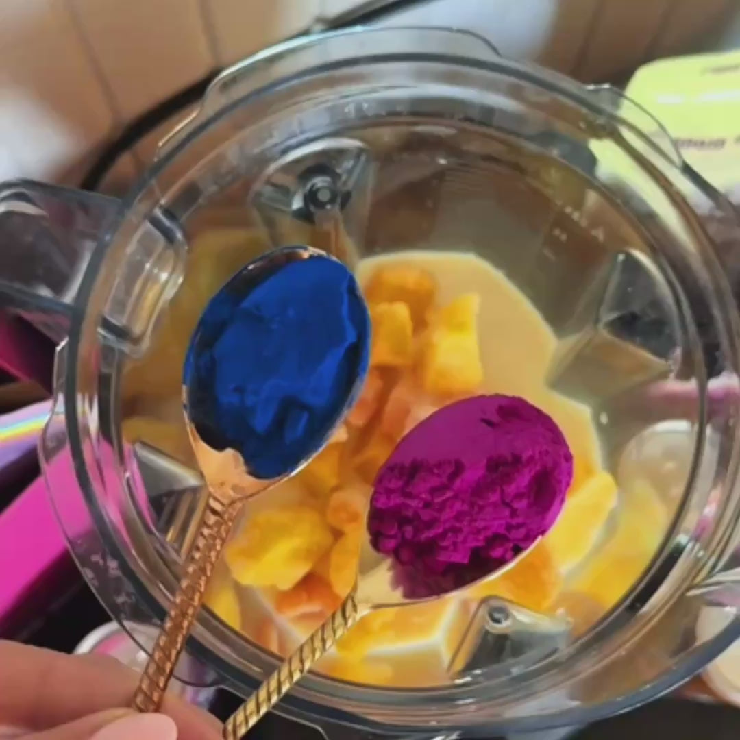 Mix them together for the ultimate glow-boosting ritual. Add 1 teaspoon of Blue Spirulina + 1 teaspoon of Pink Pitaya into your smoothie, juice, yogurt, or bowl. The colors blend beautifully, and the benefits work in harmony – giving you radiant skin, antioxidant defense, and lasting energy in every scoop.